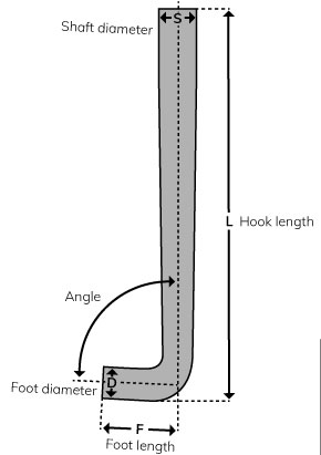 Fine pitch hooks are made from bent round wire and defined by their foot diameter, foot length, and shaft diameter. Our long hook length of 30 mm enables easy alignment to the test point where other components restrict access to your test site. The hook’s angle is typically 85° to pull the wire into the hook, so it does not slip off. Besides the standard tools, we design custom solutions to fulfill all test requirements.